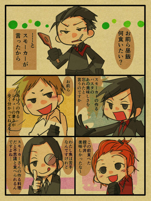 擬人化で掛け算するとあんまり好みじゃない気がしたので擬人化はとりあえずスモーカーがみんなに慕われています。ただただそれだけです。